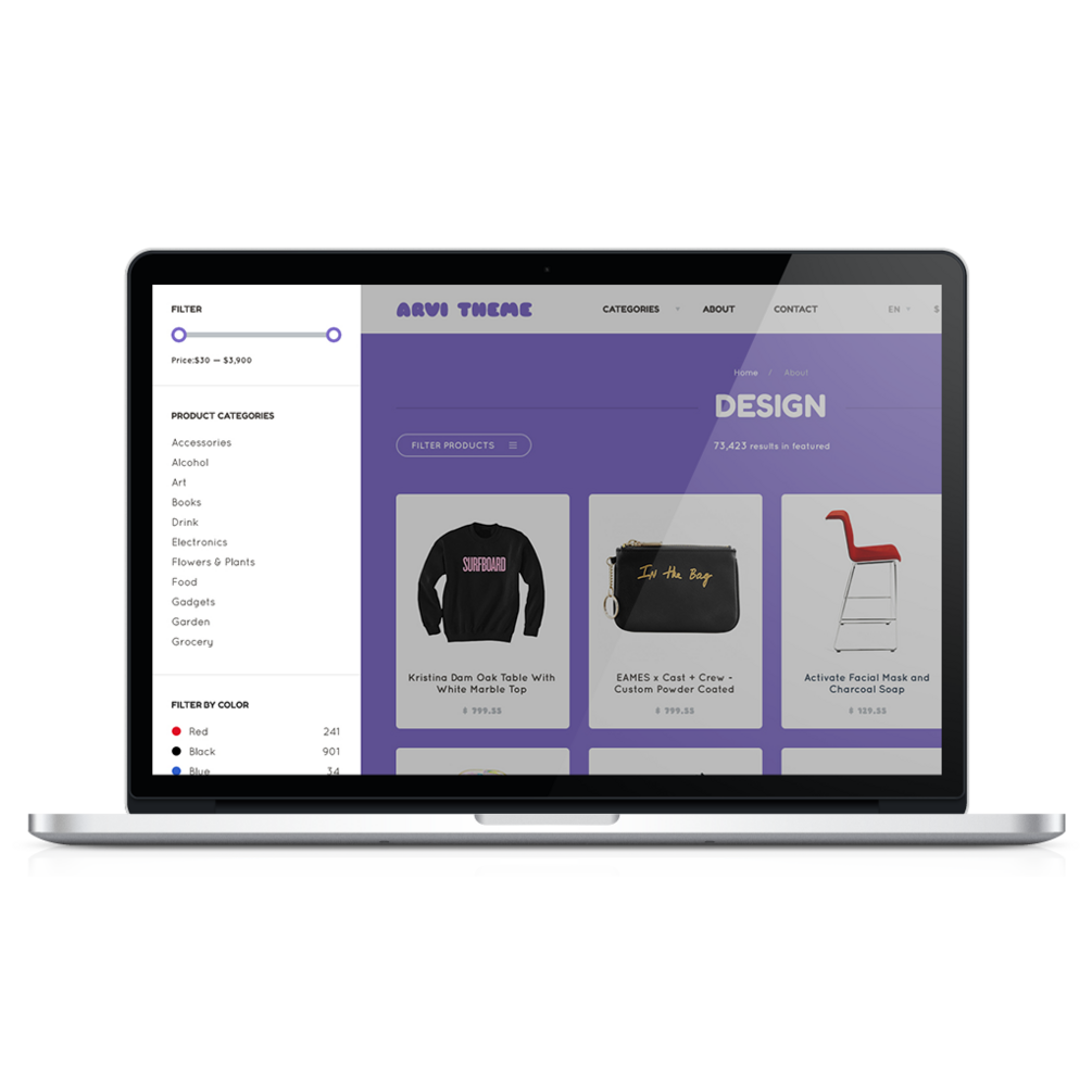 Arvi Theme is a neat PSD template for eCommerce theme. Due to rounded corners the design is beautiful and elegant. Template is thought to be user-friendly. Design is not loaded with unnecessary elements and easily understood.